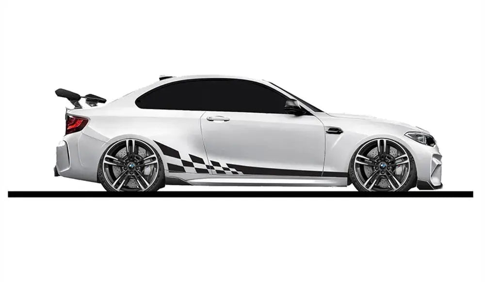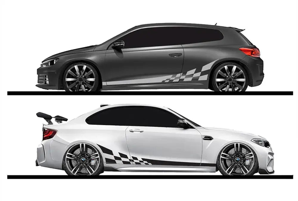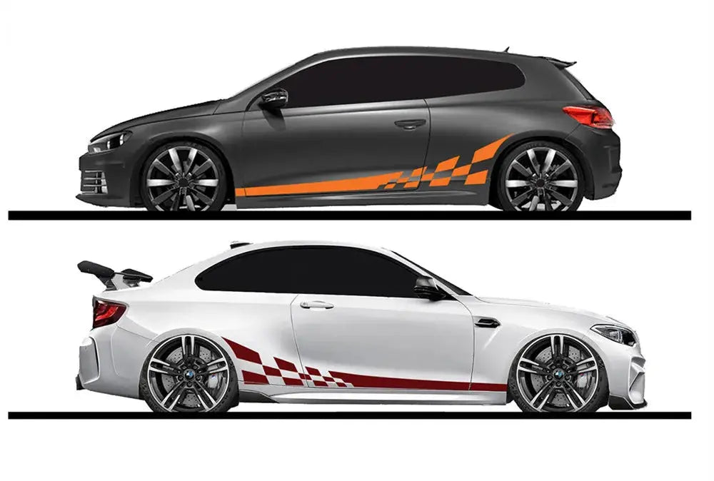 araba sticker, oto sticker, yan şerit sticker, damalı bayrak sticker, yarış şeritleri, modifiye sticker, tuning aksesuar, araç kaplama, vinil sticker, Sticker Master, Volkswagen sticker, BMW sticker, araç giydirme