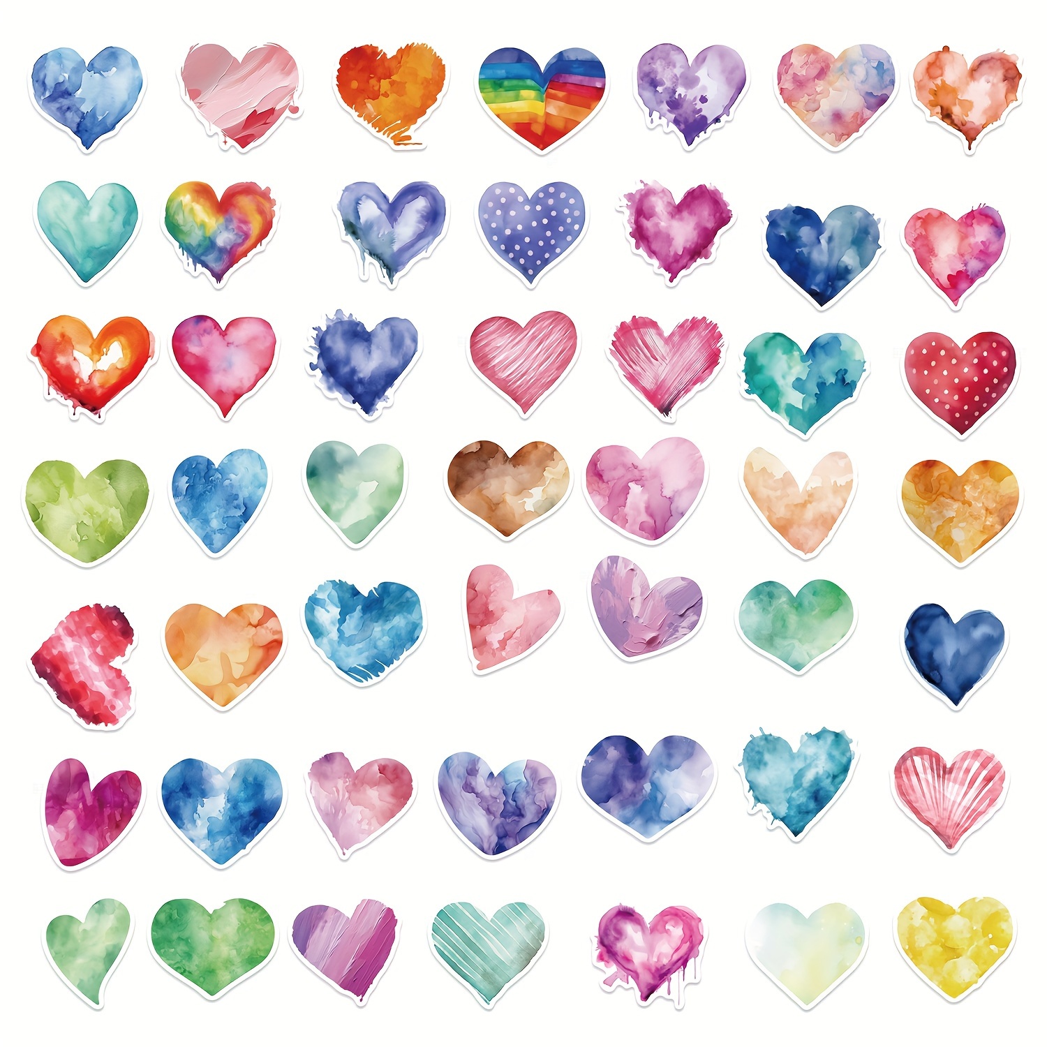 kalp sticker, sevgililer günü çıkartma, akvarel kalp vinil, su geçirmez sticker seti, laptop sticker, termos etiketi, journal scrapbook sticker, estetik kalp çıkartmaları