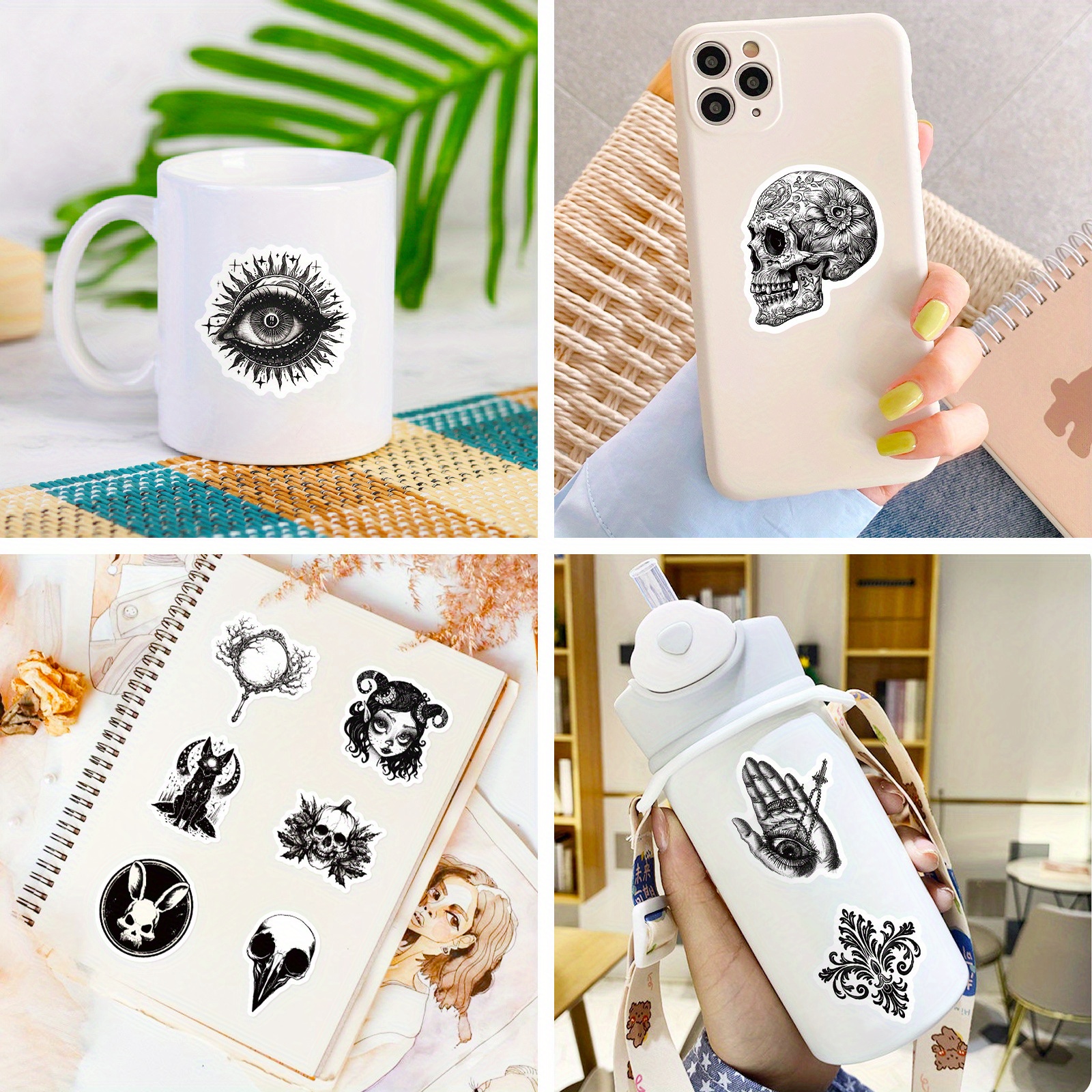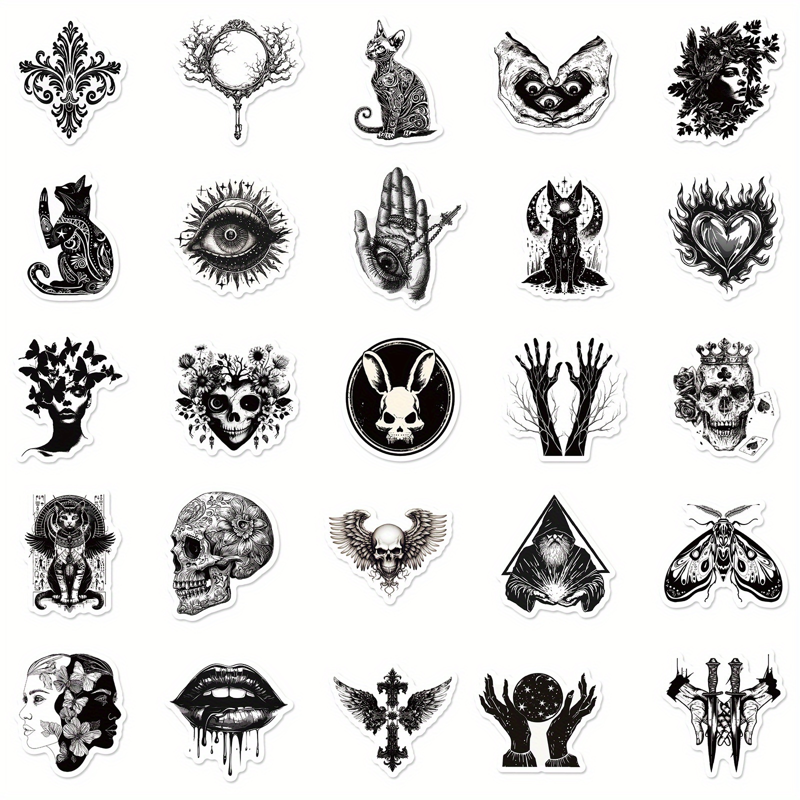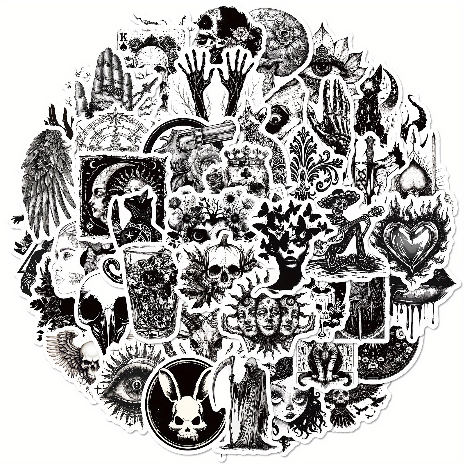 50 adet farklı siyah-beyaz gotik vinil sticker