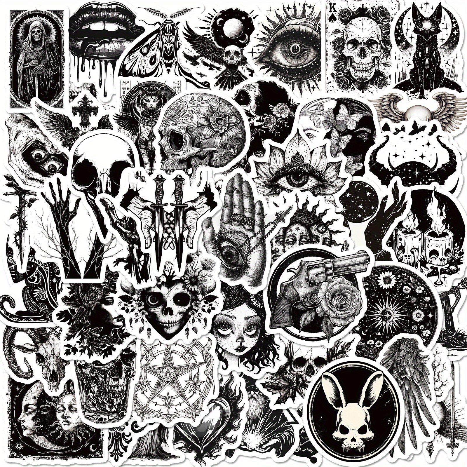 Gotik punk siyah beyaz su geçirmez vinil sticker seti, laptop–kask–bardak–kaykay–araba için