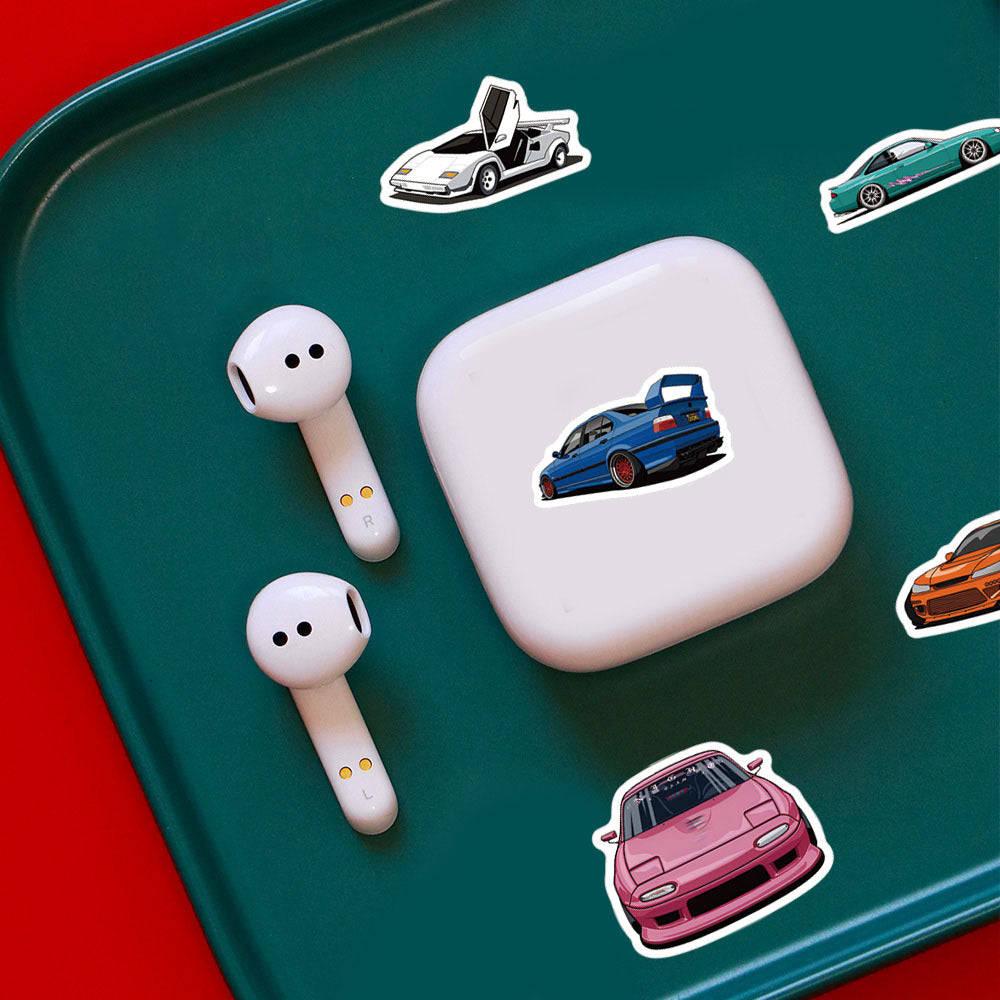 50 adet farklı JDM araba temalı vinil sticker