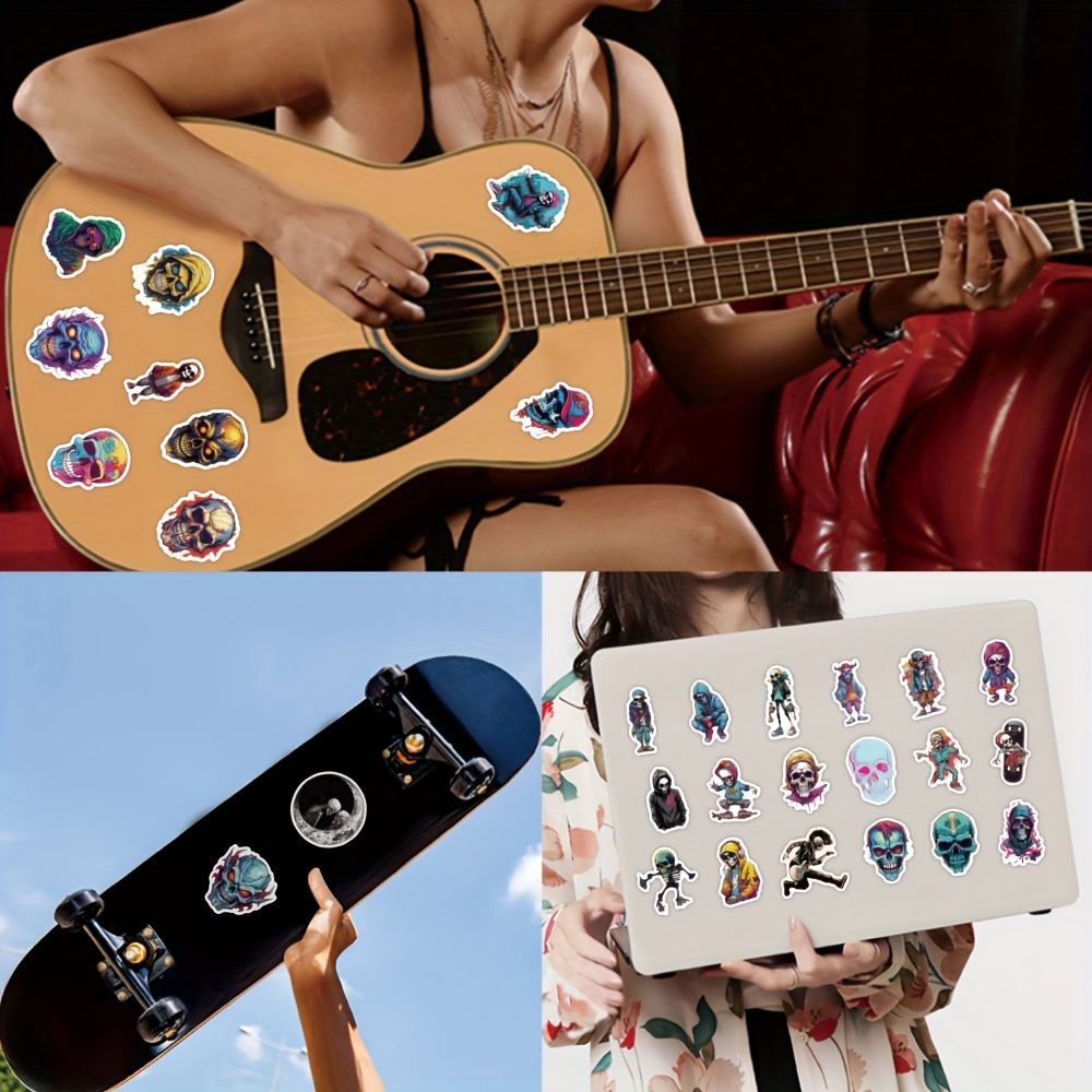 Renkli graffiti kafatası vinil sticker seti; su geçirmez, laptop–kaykay–gitar–telefon–bavul için