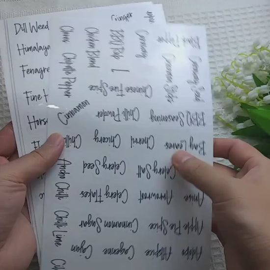 baharat etiketi, kavanoz etiketi, şeffaf etiket, mutfak düzenleyici, sticker seti, su geçirmez etiket, yazılı etiket, vinil sticker, mutfak etiketi, pantry etiket, gıda etiketi, el yazısı etiket, minimalist etiket