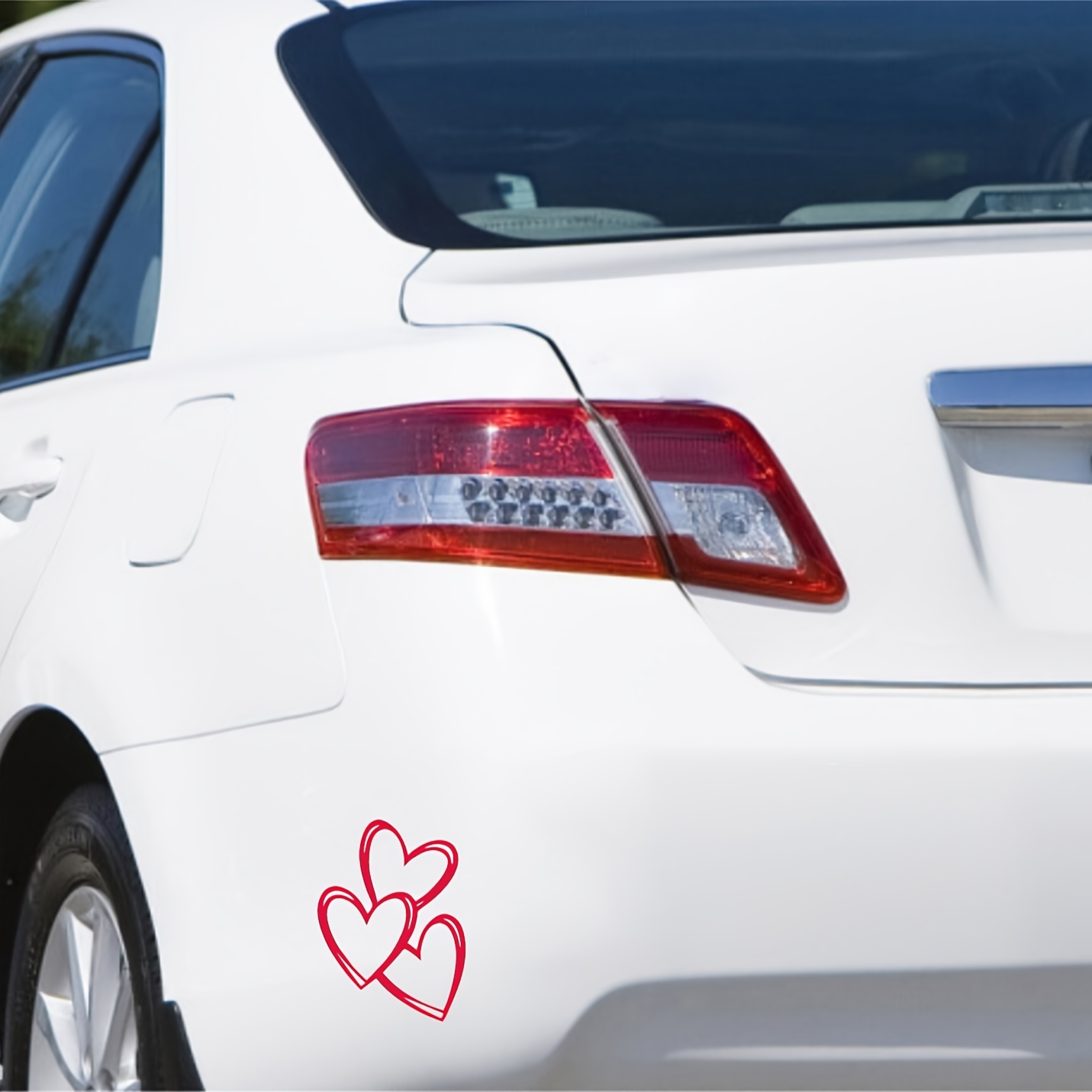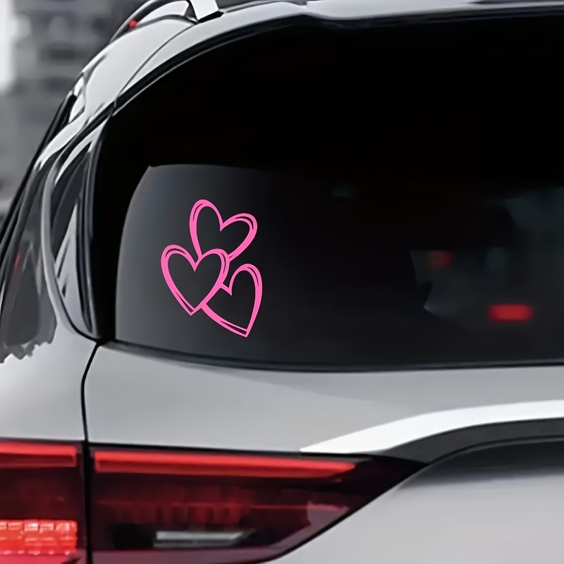 Kalp şekilli vinil araba stickerı, su geçirmez dış mekân etiket; motosiklet–laptop–bavul için, siyah/kırmızı/beyaz/pembe renkler