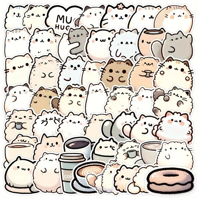 Sticker Master 50’li Kawaii Kedi & Kahve Sticker Seti Planlayıcılar, Laptoplar, Su Şişeleri ve DIY Defterler İçin Sevimli Çıkartmalar